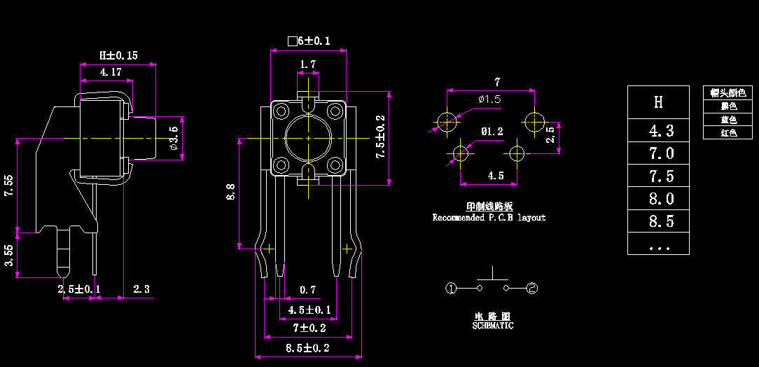 6*6系列開關(guān),全規(guī)格,提供各種高度顏色選擇,應(yīng)用于實(shí)用電器,消費(fèi)類電子產(chǎn)品,部分型號防水防塵等級IP67、耐高溫產(chǎn)品可在苛刻條件下長時(shí)間正常動(dòng)作,為客戶提供可靠保障!