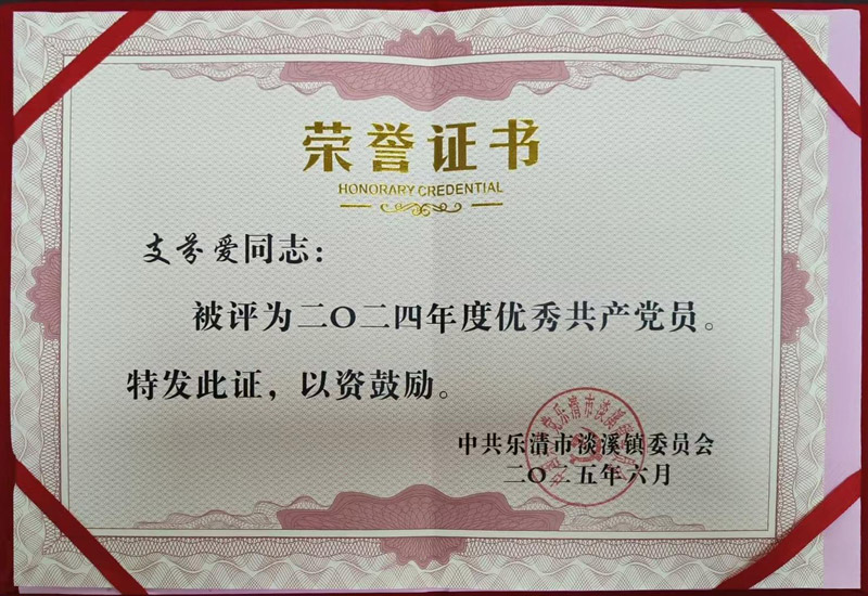 2025年7月1日,在中國共產(chǎn)黨成立104周年的特殊日子里,淡溪鎮(zhèn)召開2025年基層黨建工作會議及表彰大會;在莊嚴(yán)的國歌聲中,大會拉開帷幕,會議聚焦貫徹落實(shí)基層黨建工作要求,回顧總結(jié)工作,部署重點(diǎn)任務(wù),并對過去一年在基層崗位上表現(xiàn)突出的優(yōu)秀共產(chǎn)黨員進(jìn)行了表彰;浙江歐麥特電子有限公司黨支部黨員支芬愛同志榮獲淡溪鎮(zhèn)“二〇二四年度優(yōu)秀共產(chǎn)黨員”光榮稱號。