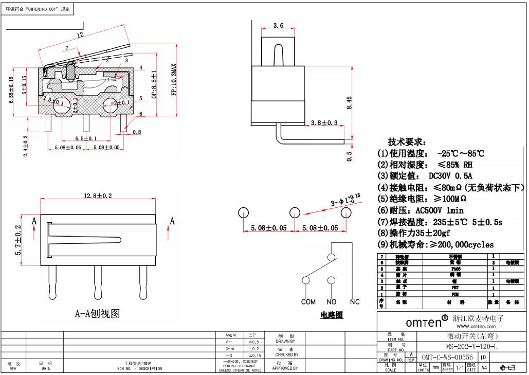 MS-202Y-120-L 微動(dòng)開關(guān)
